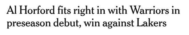 霍福德的打法,就像勇士队多年来一直在寻找的一块篮球拼图,如今终于找到了。自本周早些时候霍福德加盟正式官宣以来,科尔就对他的适配性赞不绝口。在观看了霍福德对阵湖人队的季前赛首秀后,其适配性背后的原因便一目了然。